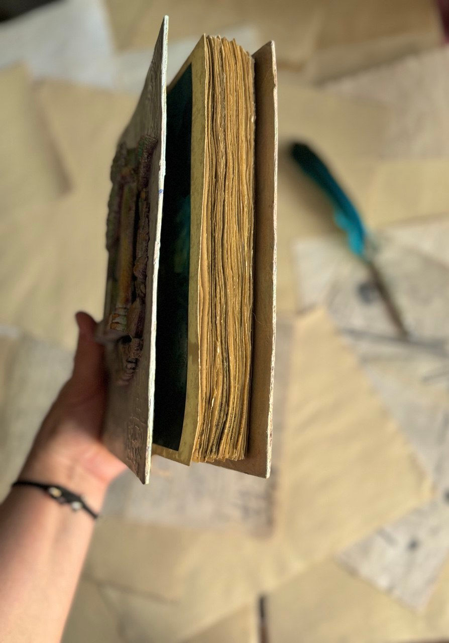 Эта уникальная книга ручной работы, создает ощущение древности и мудрости, словно передает энергию веков. Украшена объемным декором, который придает ей глубину и магическое значение. На задней стороне книги элемент сакральной геометрии- спираль, работает на рост и внутреннее развитие.