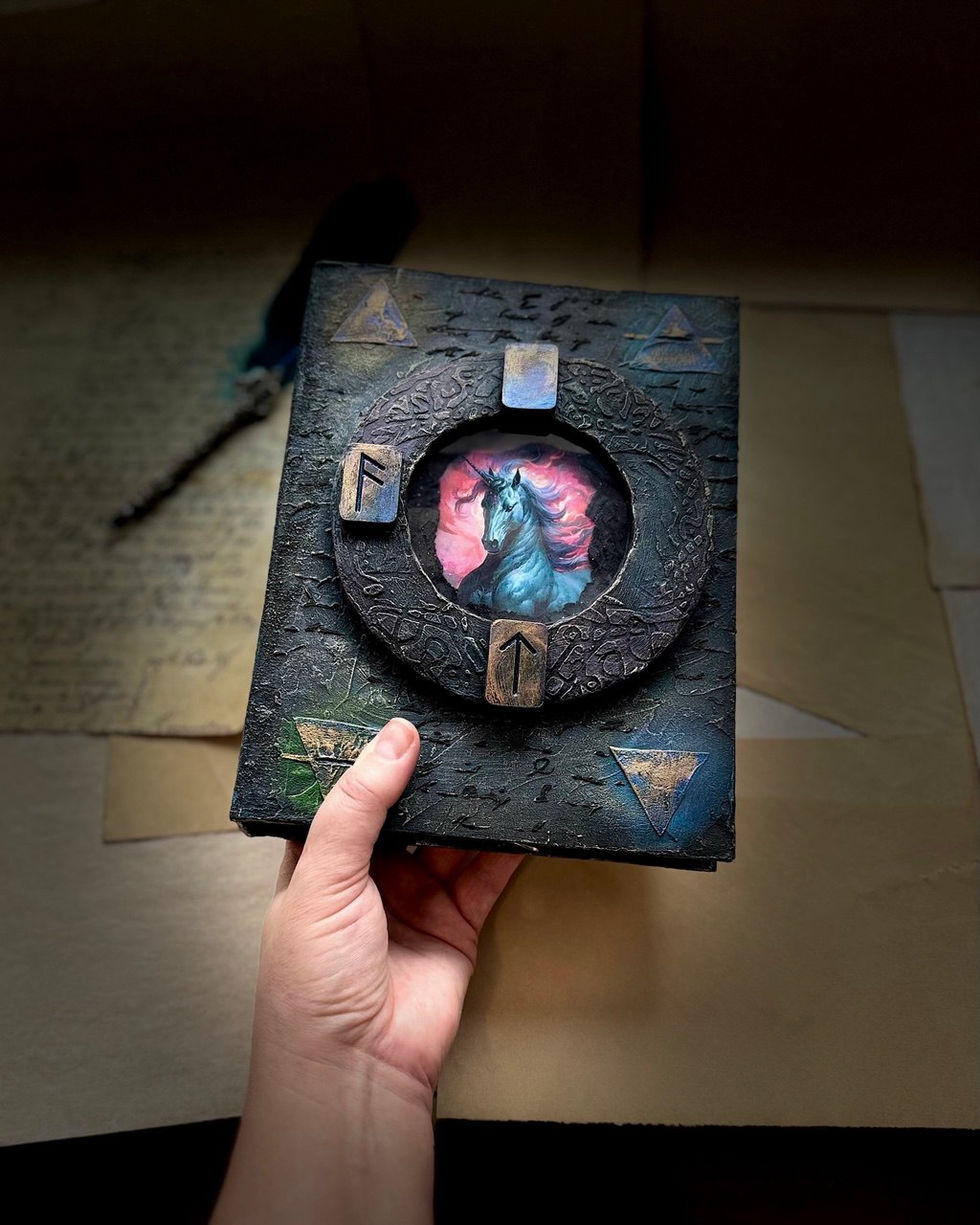 В центре обложки — тотемное животное: чёрный единорог. Он символизирует силу духа, внутреннюю свободу и особую чистоту намерений. Руны на обложке: